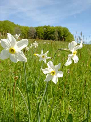 Elle pousse entre avril et juin. Son bulbe contient un alcaloïde ( narcissine ) qui lui donne des propriétés vomitives bien connues des anciens. le parfum très fort que dégage sa fleur est si entêtant qu’il peut presque provoquer un endormissement a forte dose. C’est l’origine du nom, du grec “narke” (sommeil). la floraison est si dense dans les prairies fauchées d’altitude que les fleurs sont ramassées au râteau pour être expédiées vers les fabriques de parfum.